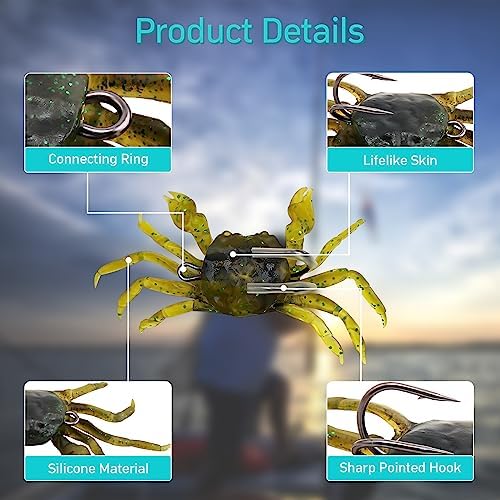 Simulación cangrejo arrastra fondos atrayendo bass ocultos. Suaves materiales flexibles resisten tirones. Anzuelos integrados aseguran enganches firmes. Para salada donde crustáceos abundan. Facilita rigs en rocas sumergidas. Versátil en estuarios mixtos. Mejora imitaciones naturales. Reduce rechazos por falsos. Ideal en corrientes lentas. Perfecto para tácticos fondo.