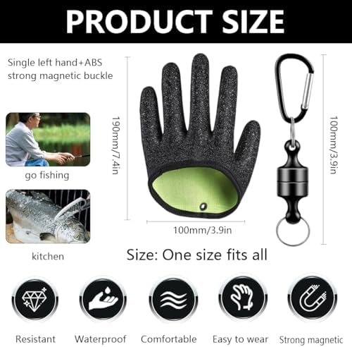 El guante protege manos de dientes afilados en capturas vivas. Látex impermeable repele humedades en manipulaciones. Para lucios en aguas frías invernales. Facilita cierres magnéticos rápidos una mano. Anti-cortes capa evita perforaciones profundas. Ideal para pescadores en ríos caudalosos. Reduce resbalones en peces escurridizos. Versátil para especies agresivas. Mejora seguridad en liberaciones. Perfecto para mano izquierda dominante.